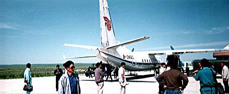 さらに飛行機で外蒙古に近い草原地帯のシリンフォトに飛行機で到着。 高い山がないので超低空で飛んでいったのにはビックリ。 もちろんプロペラ機。 |