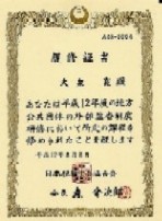 平成12年度 地方公共団体の外部監査制度研修・履修証書